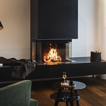 Dank intelligenter Scheibenspülung und ADVANCED GLASS CONCEPT© bleiben die Scheiben jederzeit sauber und dem Feuergenuss stehen keine Russflecken im Weg. Besonders geeignet ist VISIO 3 UNIQ auch für Niedrigenergie- und Minergiehäuser.